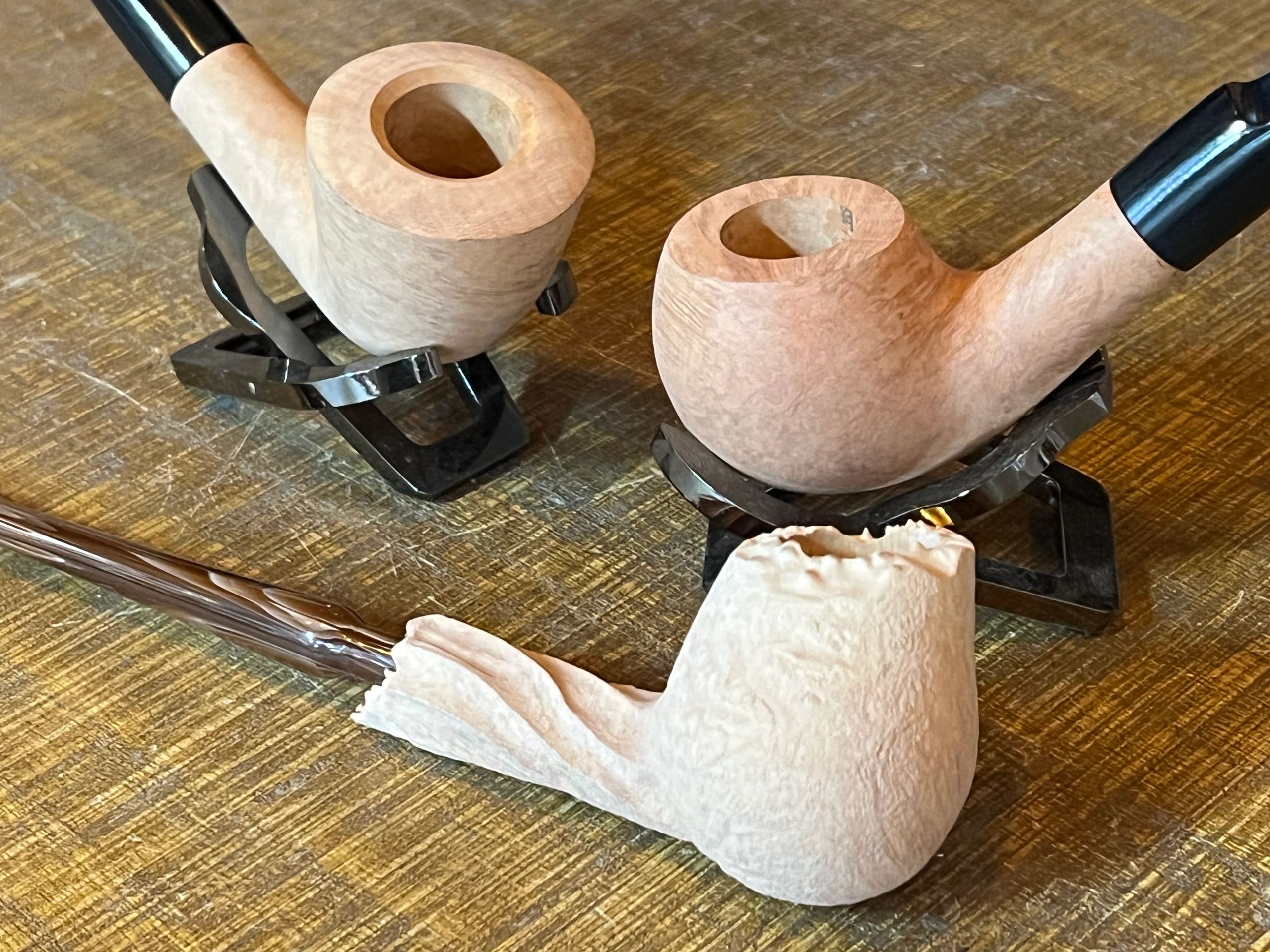 These are premium unfinished factory pipes featuring high grade Italian briar and acrylic stems. But handmade pipes sneak in every once in a while, too.